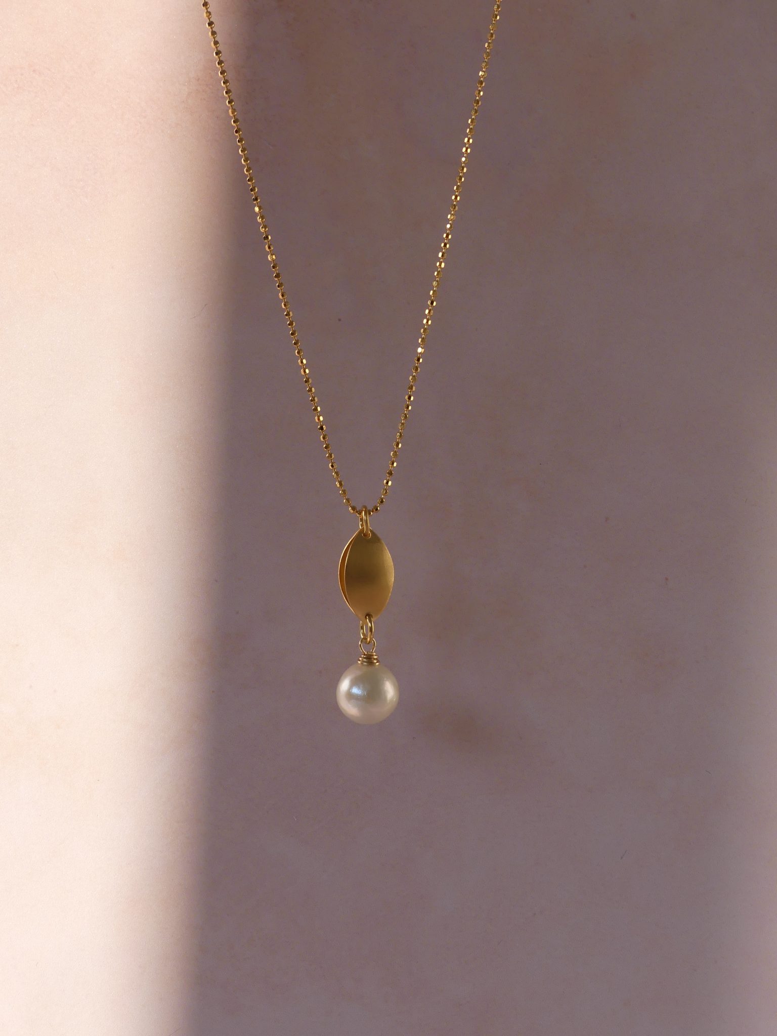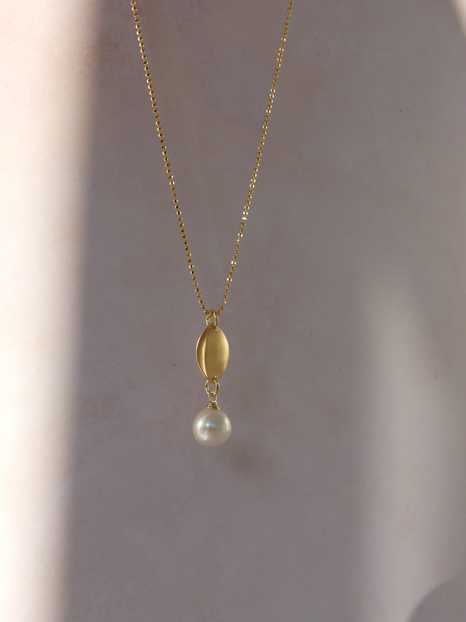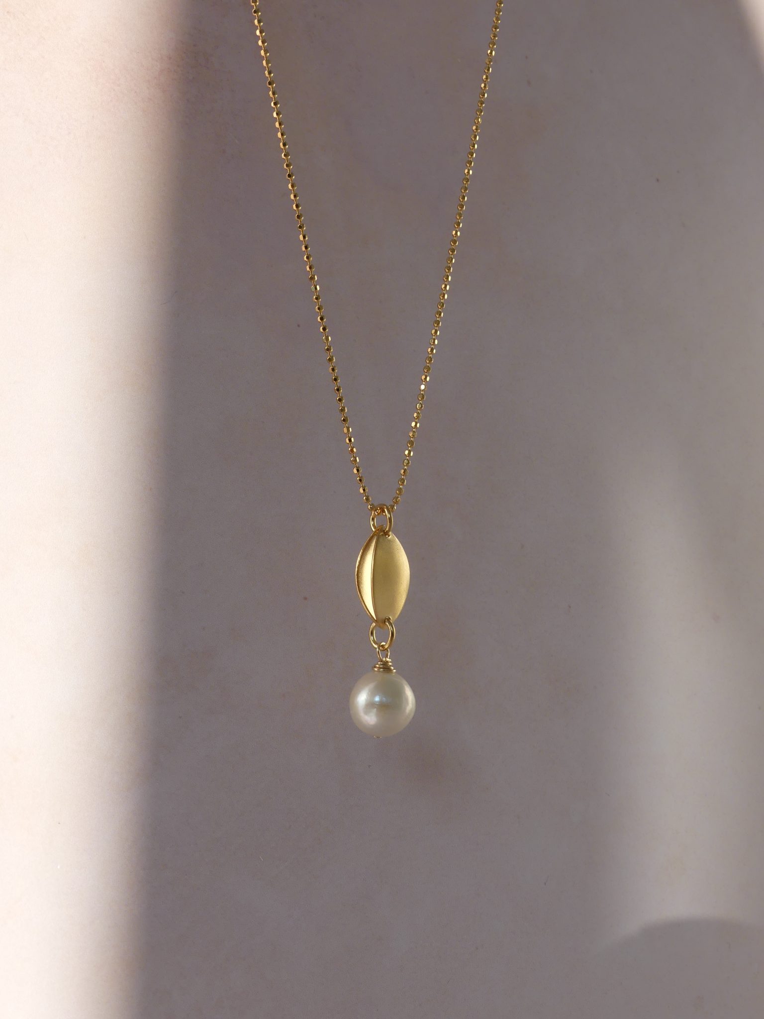 The Cosmic drop necklace has a beautiful shimmer to it, with the marquise shaped drop satin finished in contrast to the lustrous shine of the freshwater pearl.