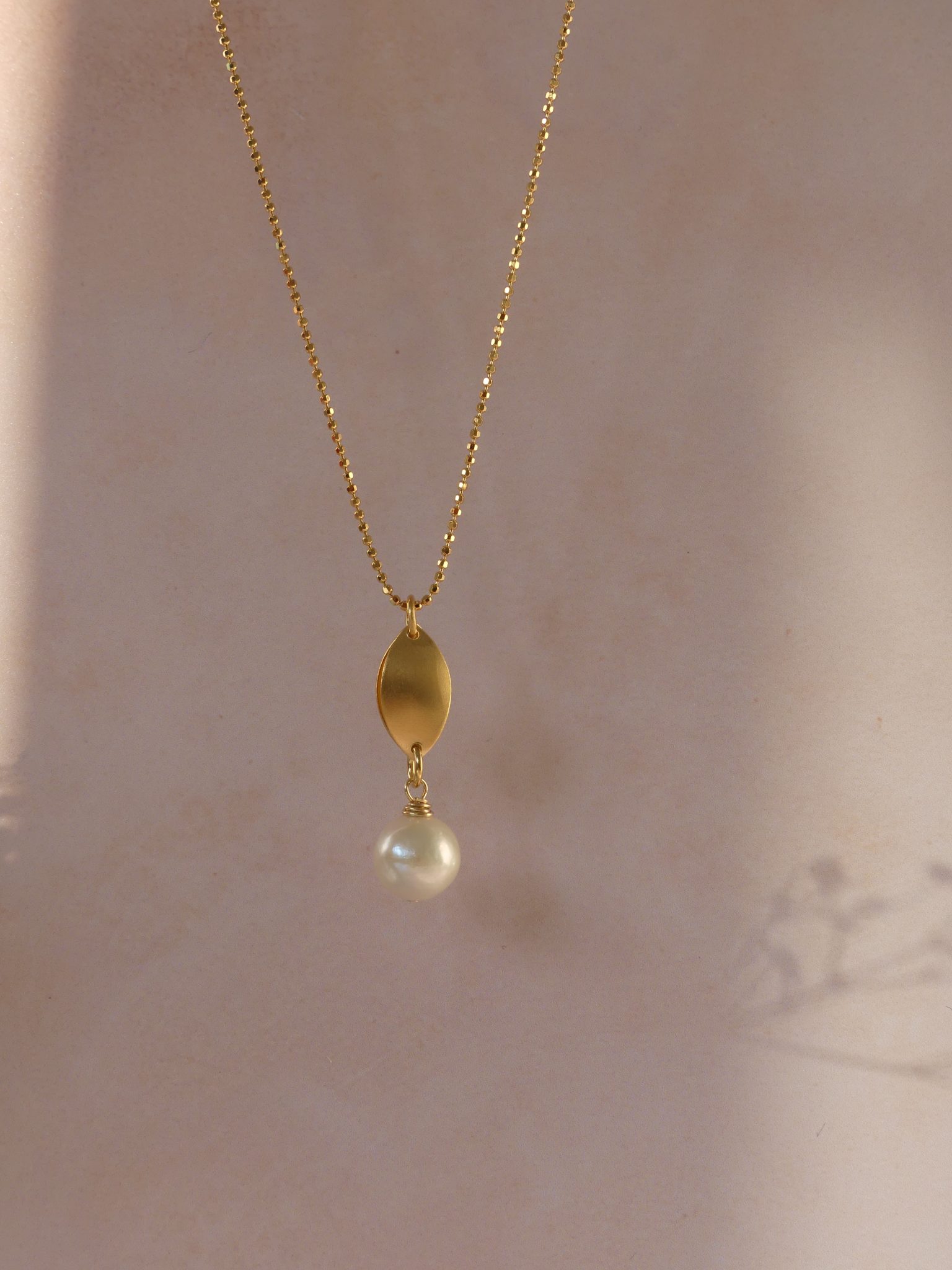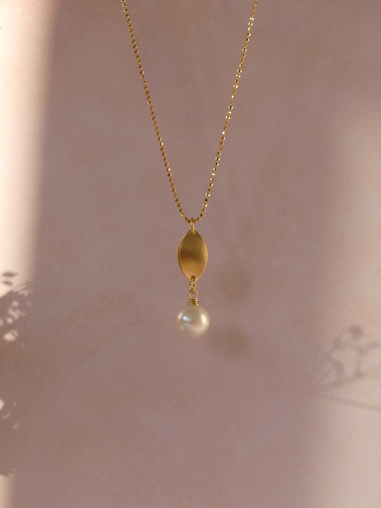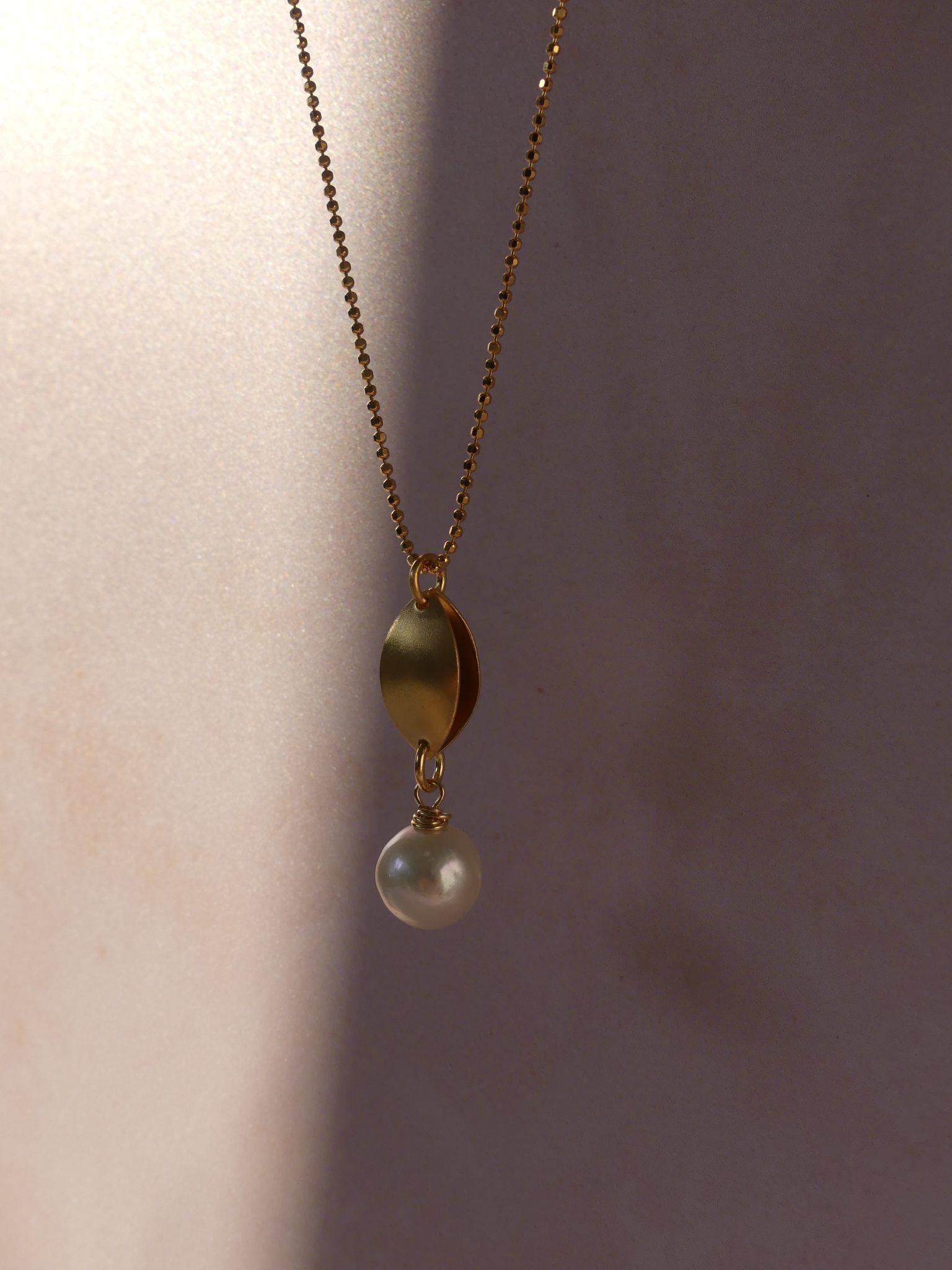 The Cosmic drop necklace has a beautiful shimmer to it, with the marquise shaped drop satin finished in contrast to the lustrous shine of the freshwater pearl.